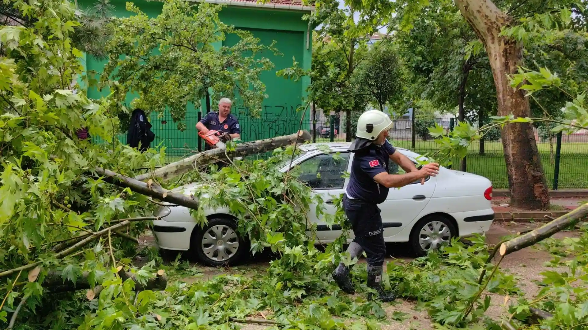 Olay Bursa’nın İnegöl ilçesinde meydana geldi. Saat 14.50 sıralarında başlayan sağanak yağmur sonrası Mesudiye Mahallesi Hekim Sokak’ta bulunan ağacın dalı sokak üzerinde park halinde 16 CBK 23 ve 16 LUC 42 plaka otomobillerin üzerine devrildi. Araçlarda hasar meydana geldi. Olay yerine gelen itfaiye ekipleri ağaç dallarını keserek araçları kurtardı.
