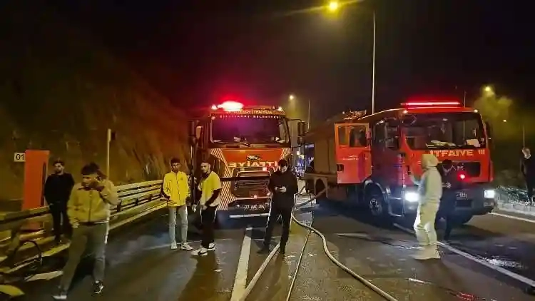 Kocaeli’ den İzmir istikametine giden yolcu otobüsü, Bursa-İstanbul yolu Orhangazi Tüneli girişinde alev alev yandı. 39 yolcu hızla tahliye edilirken, 3 yolcu dumandan etkilendi.
