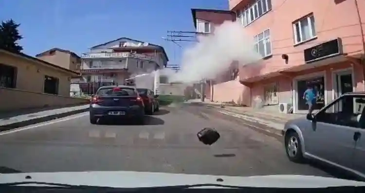 Olay, merkez Osmangazi ilçesi Hamitler Mahallesi’nde meydana geldi. Edinilen bilgiye göre, hat üzerinde seyir halinde olan belediye otobüsünün su borusu bir anda bomba gibi patladı. O anlar saniye saniye araç içi kamerasına yansırken, olayda şans eseri yaralanan olmadı. Otobüs şoförü, otobüsü tamir ettikten sonra yoluna devam etti.