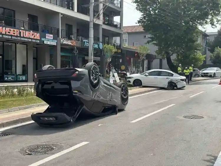 Bursa’da park halindeki araca çarpan otomobil takla attı. Kazada 1 kişi yaralandı.