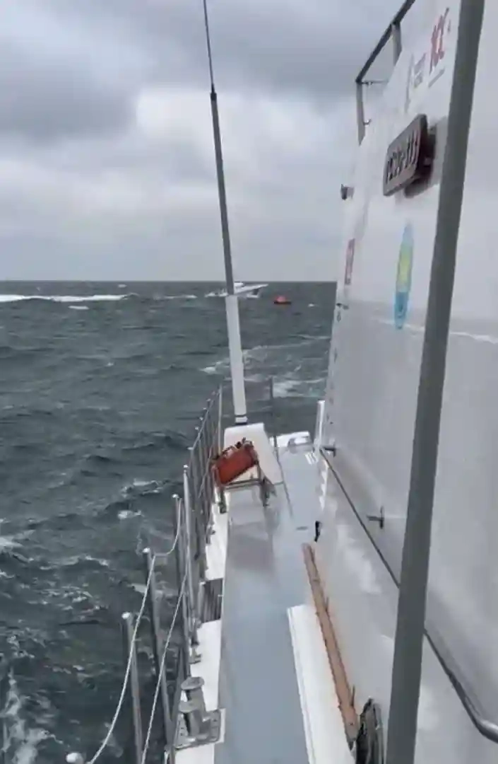 Ekipler, fırtınalı havada ulaştıkları kurtarma bölgesinde boş bir can salı tespit ettiler. O anlar ise kamera ile an be an kaydedildi.