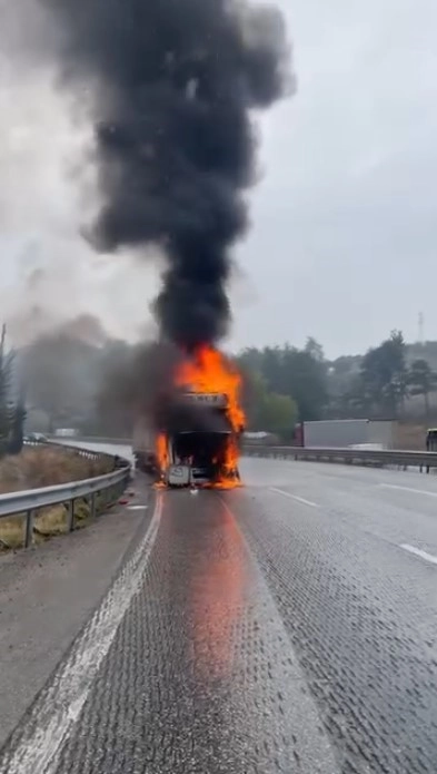Bursa-Yalova yolunda bir tır seyir halindeyken alev aldı.