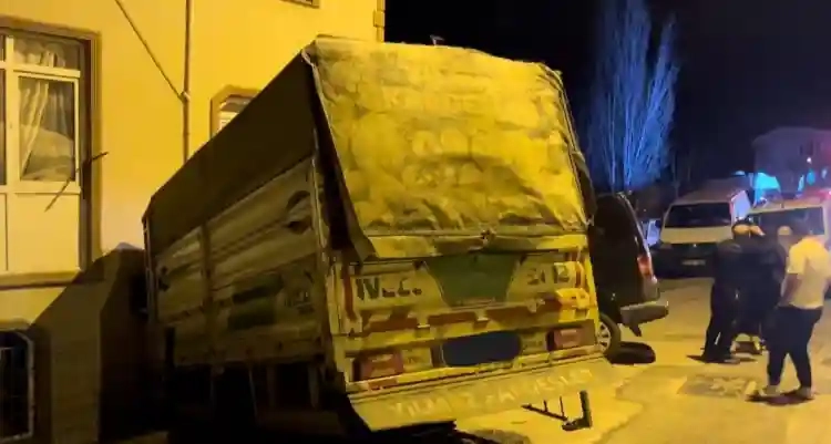 Şiddetli lodosa yenik düşen kamyonet evin salonuna girdi