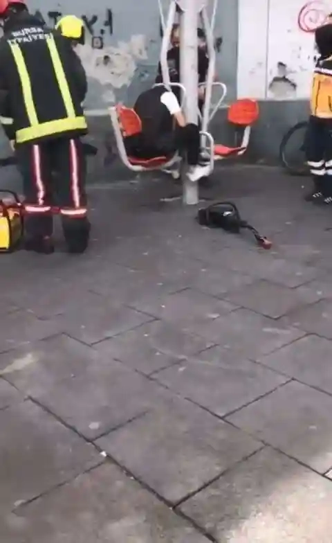 Parkta arkadaşlarıyla spor yapan genç, bilinmeyen bir sebeple başını spor aletlerinin korumalarına sıkıştırdı. Birkaç deneme yapmasına rağmen başını kurtaramayan gencin arkadaşları durumu itfaiye ekiplerine bildirdi.