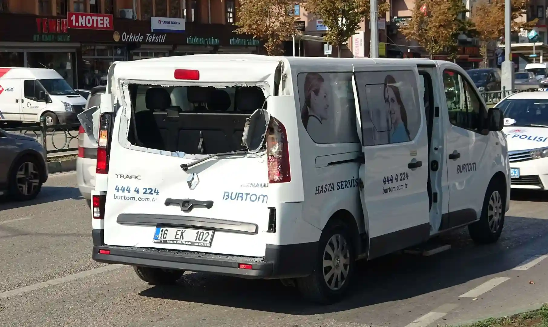 Olay, merkez Osmangazi ilçesi Haşim İşcan Caddesi üzerinde meydana geldi. İddiaya göre, Abdürrezak Çava (22) idaresindeki 34 BZ 3989 plakalı tur minibüsü, Haşim İşcan Caddesi üzerindeki Doğanbey TOKİ dönüş ışıklarında önünde seyreden özel bir sağlık kuruluşuna ait Cüneyt Dinler idaresindeki 16 EK 102 plakalı hasta nakil aracına arkadan çarptı. Çarpmanın şiddetiyle savrulan tur minibüsüne, arkasında seyreden Aşkın Demirel (60) idaresindeki 16 AJV 798 plakalı hafif ticari araç da çarpınca, minibüs devrildi. Kaza sonrası yan yatan tur minibüsünün şoförü Abdürrezak Çava aracın açık olan yan camından kendi imkanıyla çıktı. Kazayı gören vatandaşlar 112 Acil Çağrı Merkezine ihbarda bulundu. Kısa sürede olay yerine sağlık ve polis ekibi sevk edildi. Olay yerine gelen polis ekipleri caddede çevre güvenliği alırken, sağlık ekipleri ise araç sürücülerini ve sağlık kuruluşuna ait nakil aracındaki hasta ve yakınının kontrollerini yaptı. Çarpmanın şiddetiyle korkuya kapılan hasta ve yakınını çevredeki vatandaşlar sakinleştirdi. Hafif sıyrıklarla kazayı atlatan tur minibüsünün şoförü olay yerine gelen ambulans yardımıyla Çekirge Devlet Hastanesine kaldırıldı.