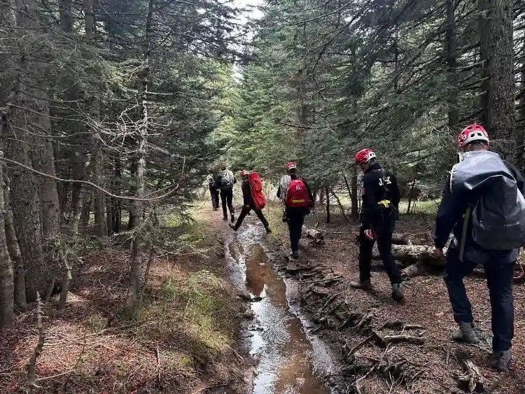 Senaryo gereği Uludağ’da mahsur kalarak yaralanan bir kişi dağcılık ipleriyle kurulan düzenekle kurtarıldı.