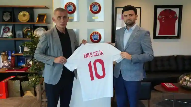 Bursaspor Başkanı Enes Çelik Türkiye Futbol Federasyonu Başkanı İbrahim Hacıosmanoğlu’nu ziyaret etti