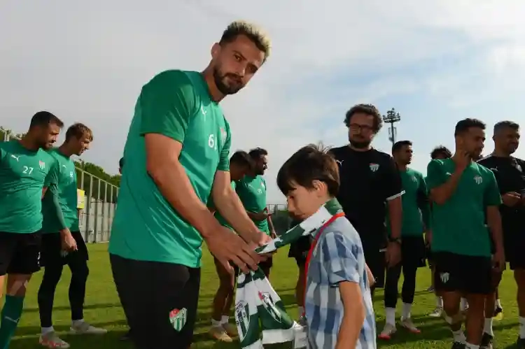 Çocuklar, Bursasporlu futbolculara başarılar dilerken, oyunculardan ve teknik ekipten iyi bir sezon sözü aldılar.