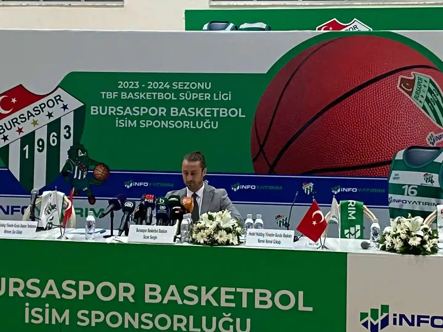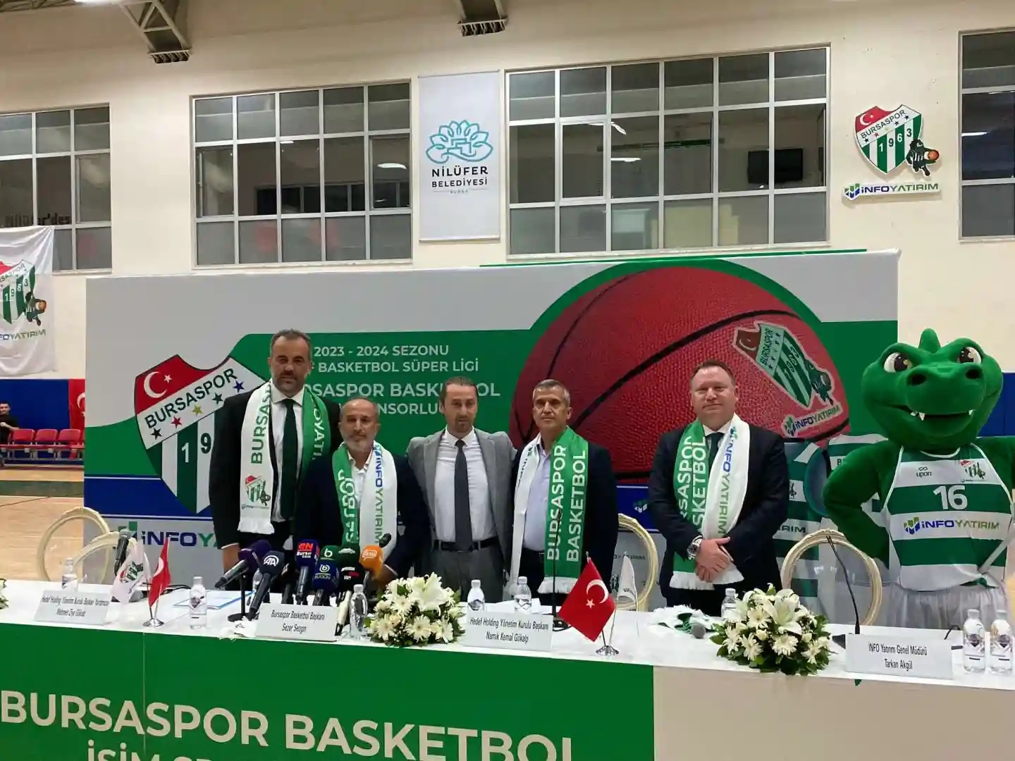Bursaspor Basketbol İnfo Yatırım ile olan isim sponsorluğu anlaşmasını taraftarın ve basın mensuplarının önünde imzaladı.