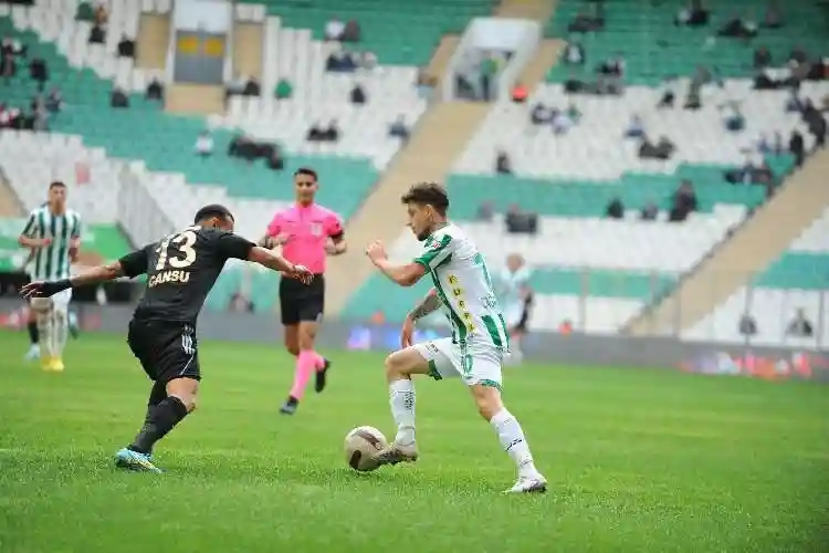 Uzatma dakikalarında Eren Güler'in yüzde yüz gol pozisyonundan yararlanamamasıyla Bursaspor iyi mücadele gösterdiği mücadelede bir puana razı oldu.