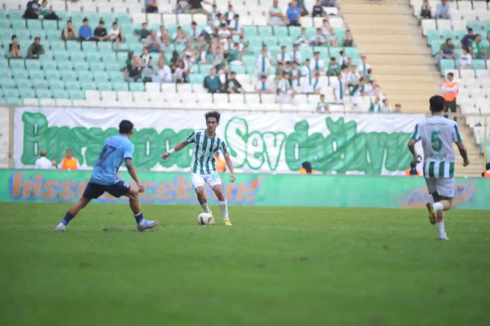 Bursaspor ataklarında ileride pas istasyonu olarak görev üstlenen Berat Altındiş, sırtı dönük oyun kurmaya çalışarak, kanatları oyuna sokmaya çalıştı. Mustafa Genç ile girdiği ikili oyunlar üzerinden skor bulmaya çalışan yeşil beyazlılar ilk yarıda bu atakları olgunlaştıramayarak skor bulmayı başaramadı.