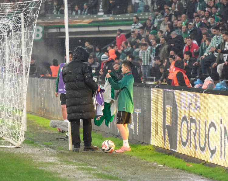 Bursaspor, Adanaspor maçında yoğun yağmurda ıslanan ve üşüyen top toplayıcı çocuklara yağmurluk dağıttı.