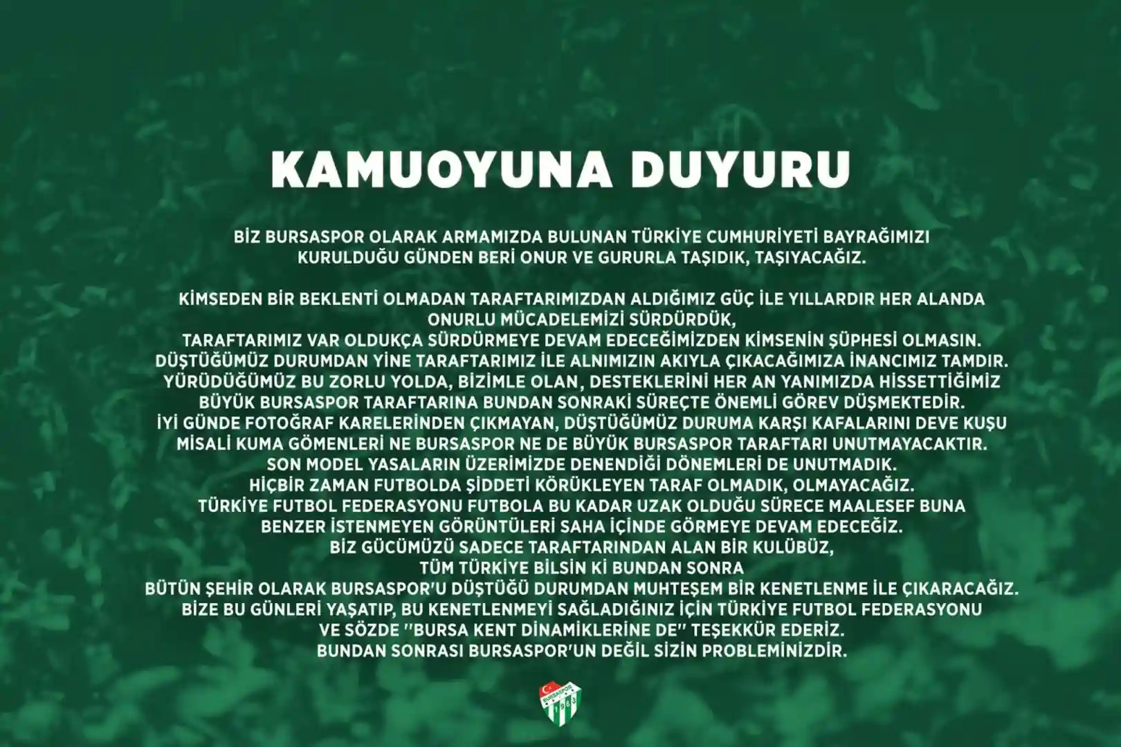 İşte Bursaspor'un paylaşımı;
