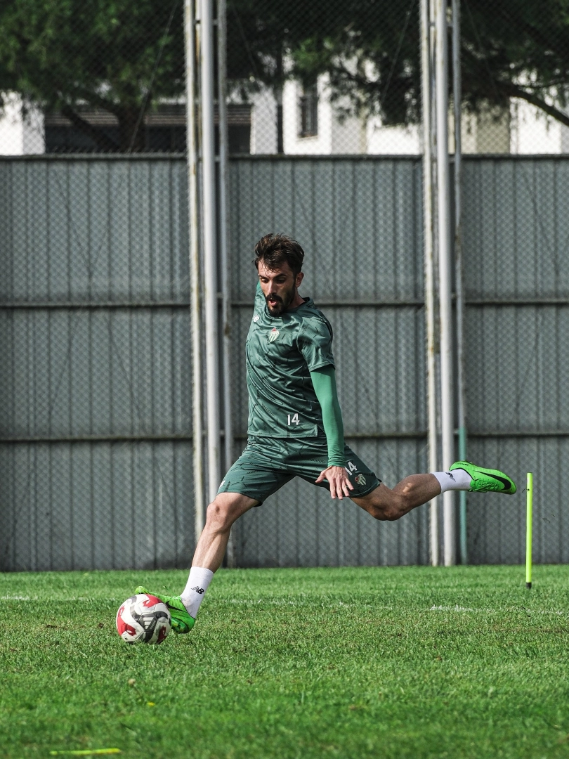 Antrenmanın ikinci bölümünde pas ve pres oyunlarına ağırlık veren Bursaspor, taktik çalışmalarla antrenmanı tamamladı.