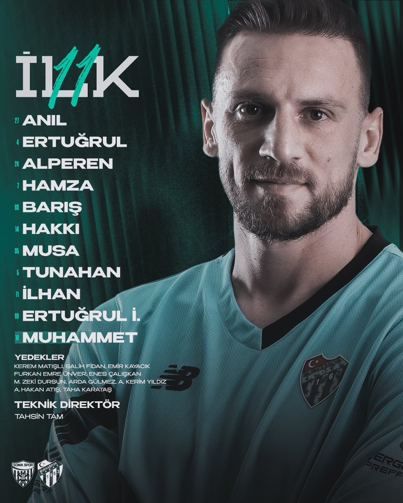 Bursaspor'un ilk 11 ve yedekleri şu şekilde: