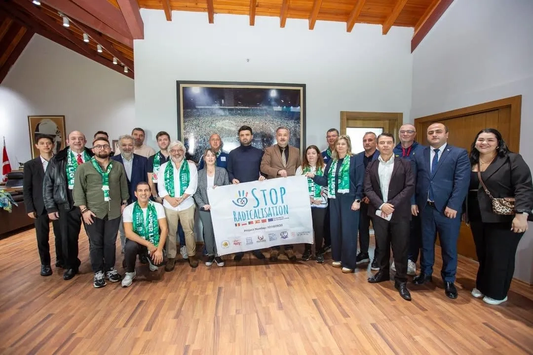 Osmangazi Belediyespor, Gençlik ve Spor Hizmetleri Müdürlüğü ile Kültür Eğitim ve Proje Derneği iş birliğinde, Avrupa Birliği Erasmus Sport çağrısı kapsamında yürütülen “Sporda Şiddet” projesine destek verdi. Proje kapsamında Romanya, Polonya, İspanya ve Portekiz’den gelen katılımcılar, Osmangazi Belediyespor Yönetim Kurulu Başkanı Fatih Karayılan ile birlikte Bursaspor Kulübü Başkanı Enes Çelik’i makamında ziyaret etti.