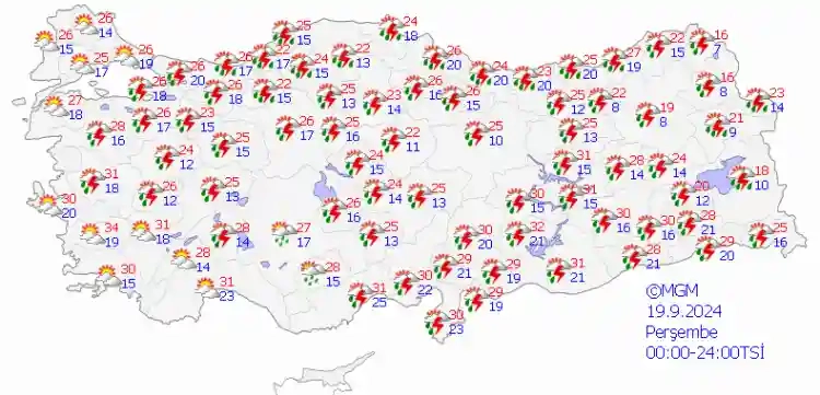 Parçalı ve çok bulutlu, yerel olmak üzere sağanak ve gök gürültülü sağanak yağışlı geçeceği tahmin ediliyor. Yağışların, sabah ve öğle saatlerinde yer yer kuvvetli olması bekleniyor.