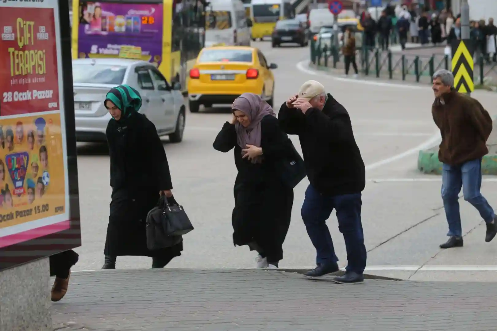 Bursa’da etkili olan lodos, vatandaşlara zor anlar yaşattı. Kimi vatandaşlar yürümekte zorluk çekerken, kimileri ise kendi imkanlarıyla lodostan korunmayı çalıştı.