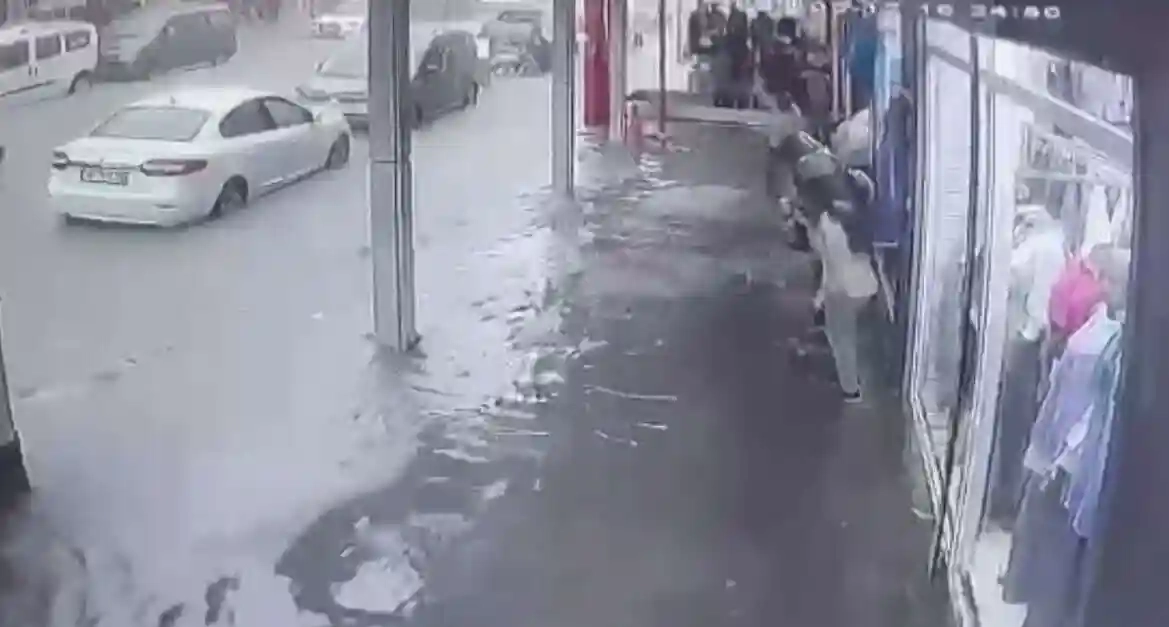 Bursa’da cadde ve sokakları göle çeviren şiddetli yağış esnaflara zor anlar yaşattı. Su baskınlarıyla mücadele eden dükkan sahipleri güvenlik kamerasına yansıdı.