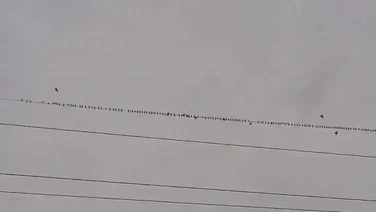 Elektrik direklerine ve tellerine konan yüzlerce sığırcık kuşu görsel şölen oluşturdu.