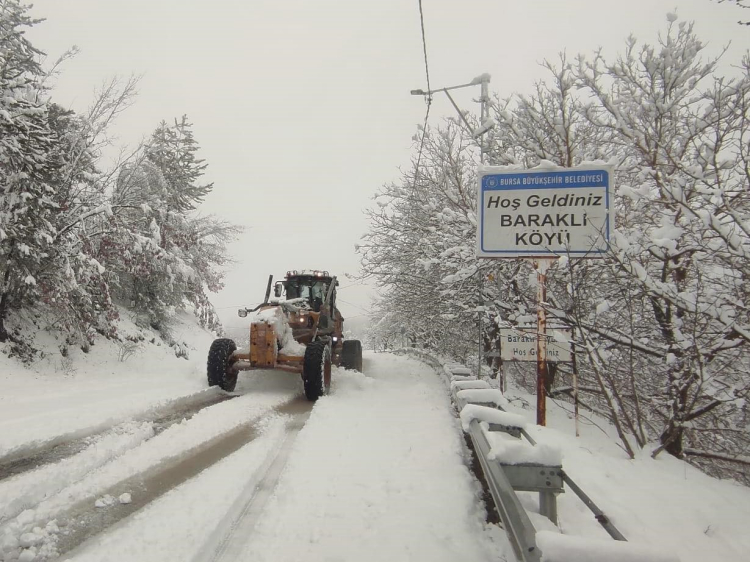 Bursa’nın yüksek kesimlerinde ve kırsal bölgelerinde etkili olan kar yağışı nedeniyle ekipler çalışmalarını sürdürüyor.
