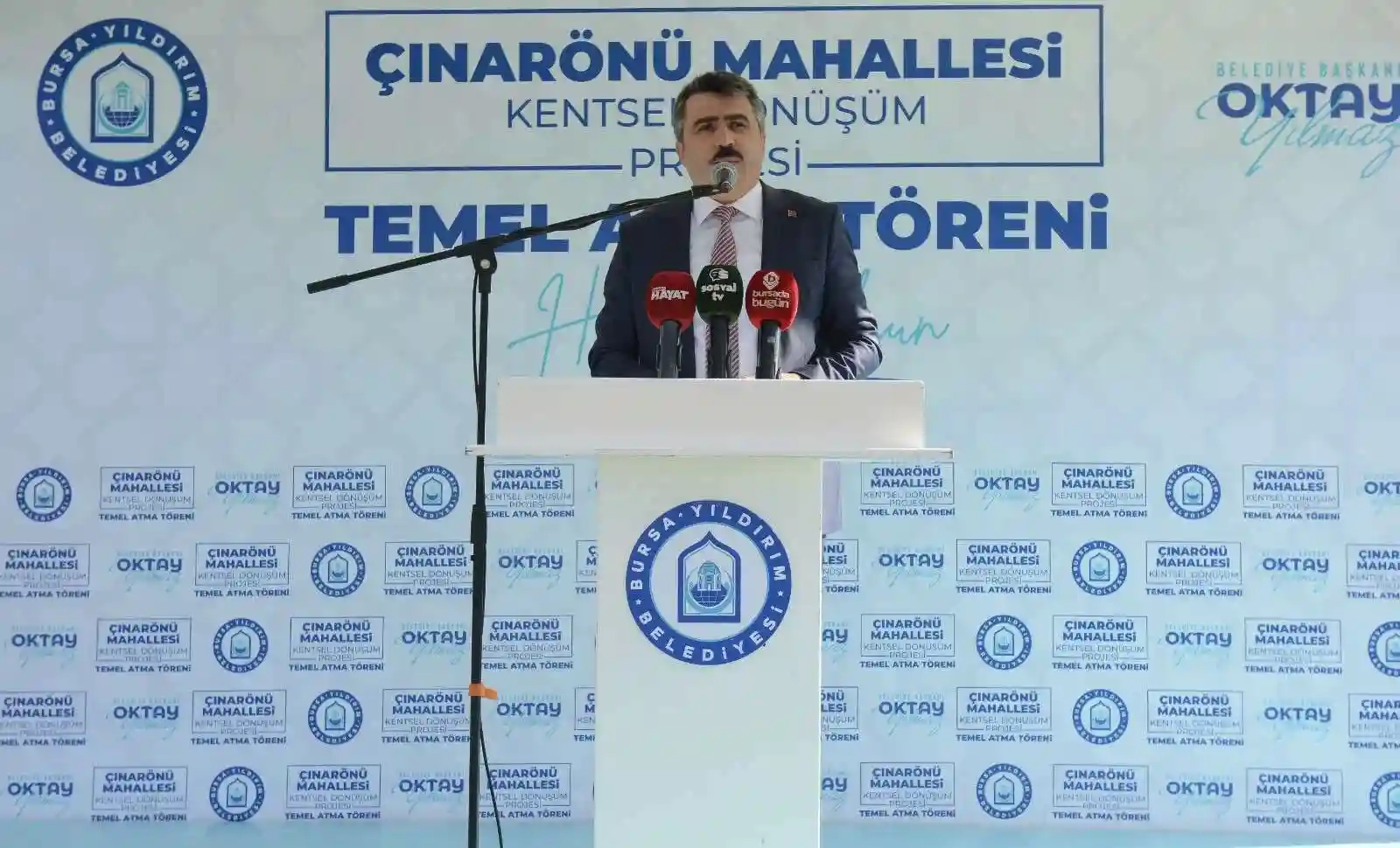 Yıldırım Belediyesi’nin, Çınarönü Mahallesi’nde 13 dönümlük alanda gerçekleştireceği kentsel dönüşüm projesinin temeli düzenlenen tören ile atıldı. Yıldırım Belediye Başkanı Oktay Yılmaz’ın ev sahipliğinde gerçekleştirilen törene; AK Parti Bursa İl Başkanı Davut Gürkan, Büyükşehir Belediye Başkanvekili Ahmet Yıldız, Yıldırım Kaymakamı Metin Esen, AK Parti Yıldırım İlçe Başkanı Ali Erbay, AK Parti il ve ilçe yöneticileri, muhtarlar, mahalle sakinleri ve çok sayıda davetli katıldı.