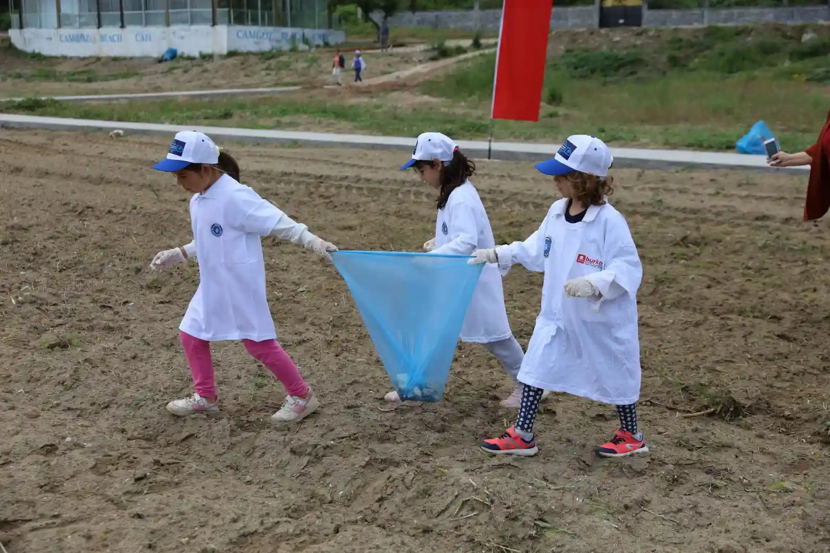 Bu yıl mavi bayrak almaya hak kazanan Karacabey’in Kurşunlu Halk Plajı’nda da küçük çevreciler, temizlik etkinliğinde gönüllü olarak görev aldı. Ellerine çöp torbalarını alan küçük çevreciler, sahilde buldukları atıkları özenle toplayıp, ‘sahillerimizi temiz tutalım’ mesajı verdi.
