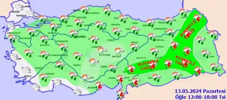 Meteoroloji Genel Müdürlüğü tarafından yapılan son değerlendirmelere göre, haftanın ilk günü olan 13 Mayıs Pazartesi gününe ilişkin raporu yayımladı.
