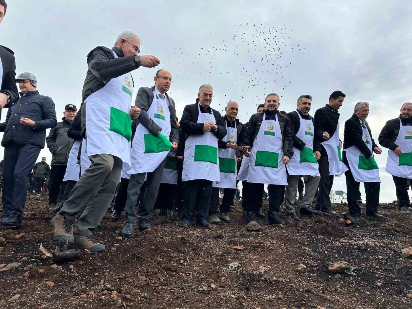 Konuşmaların ardından Bursa Valisi Erol Ayyıldız, AK Parti İl Başkanı Davut Gürkan, Karacabey, Şahan, çocuklar ve diğer törene katılanlar, hazırlanan alana tohum serpti.