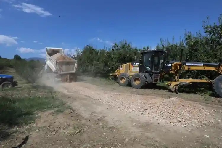 Kalıcı çözümlerle ulaşımın güçlendiğini ileten Başkan Alper Taban, "Arazi yolları ile ilgili de kalıcı çözümler üretiyoruz. Geçtiğimiz dönem de bu çalışmaları tüm kırsal mahallelerimizde gerçekleştirmiştik. Çok büyük bir arazi ağımız var. Birden fazla yol ağına ulaşabilen alanları öncelikli kılarak bu düzenlemeleri yapmaya çalışıyoruz. İsaören Mahallemizde de 8 kilometre yol ağında meyve ve sebze bahçelerine ulaşım için malzeme serimi gerçekleştiriyoruz. İsaören Mahallemizin Karakadı ve Çayyaka Mahallelerine ulaşacak 2 kilometrelik bağlantı yolunda çalışmalar yapılıyor. Çalışmamızın mahalle halkımıza hayırlı olmasını diliyorum" dedi.