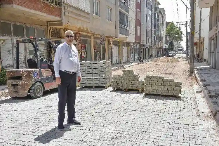 Karacabey Belediyesi'nin parke taşı çalışması ile kent daha da güzelleşiyor