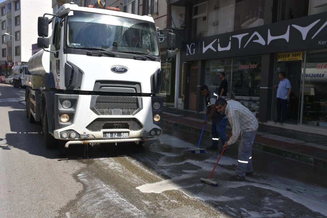 Ekipler, uygulamaya önce kaldırımları ve yol yüzeyini özel deterjanlarla fırçalayarak başladı. Ardından basınçlı suyla yıkama işlemi gerçekleştirilirken, son aşamada süpürge araçları devreye girerek kalan atıkları topladı. Böylece caddeler, vatandaşların rahatlıkla yürüyebileceği ve esnafın işlerini daha hijyenik bir ortamda sürdürebileceği tertemiz bir görünüme kavuştu.