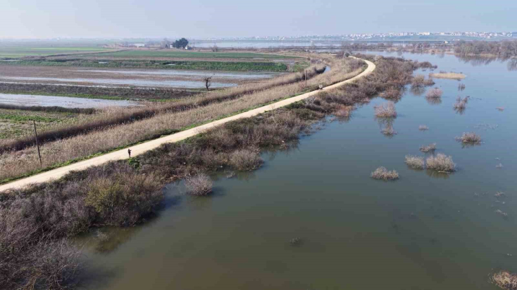 Yağışların ve Uludağ’daki karların erimesiyle Uluabat Gölü, son 10 yılın en yüksek seviyesine ulaşırken yaşanan taşkınlar Karacabey’de dönümlerce tarım arazisini su altında bıraktı.