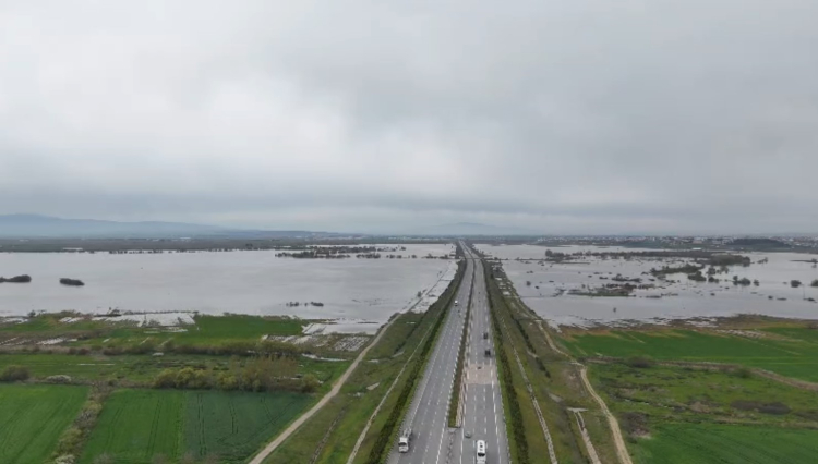 Bölgedeki tarım arazilerinin sulanmasında kullanılan ve Marmara Denizi’ne dökülen önemli su kaynaklarından Nilüfer Deresi, Kocaçay ve dün bir kişinin köprü altından geçerken suya kapılarak hayatını kaybettiği Canbolu Deresi, son 2 haftadır devam eden yağışlar sebebiyle taştı. Harmanlı ve Bayıraltı mahalleleri sınırları içerisinde bulunan Karacabey Ovası’ndaki binlerce dönüm tarım arazisi ile tarlara giden yollar sular altında kaldı. Yolların suyla kaplanması sebebiyle çiftçiler arazilerine ulaşamadı. Bursa istikametinden Bandırma istikametine devam eden otoyol, suyla kaplanan ovayı tam ortadan ikiye böldü. Su altında kalan tarım arazilerinin dronla çekilen görüntüleri, taşkının etkilerini gözler önüne serdi.