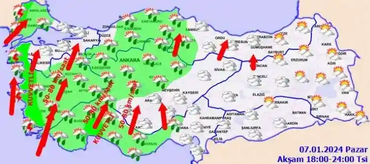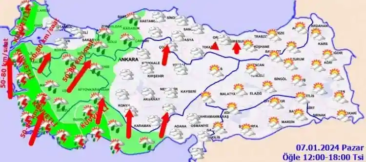 Meteoroloji Genel Müdürlüğü 7 Ocak 2024 Pazar gününe ilişkin hava raporunu açıklandı.