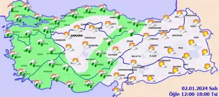 Meteoroloji Genel Müdürlüğü tarafından yapılan son değerlendirmelere göre: Ülkemiz genelinin parçalı ve çok bulutlu, Marmara, Ege, Akdeniz, İç Anadolu, Karadeniz, Doğu ve Güneydoğu Anadolu'nun batısı ile Diyarbakır ve Erzurum çevrelerinin yağışlı geçeceği tahmin ediliyor. Genellikle yağmur ve sağanak gece saatlerinden sonra Doğu Karadeniz'in iç kesimleri, Doğu Anadolu'nun batısı ile Erzurum çevrelerinde karla karışık yağmur ve kar şeklinde olması beklenen yağışların; sabah saatlerinde Antalya'nın doğu ilçelerinde, gece saatlerinden sonra Osmaniye çevreleri ile Hatay'ın kıyı kesimlerinde yer yer kuvvetli olacağı tahmin ediliyor. Sabah ve gece saatlerinde Marmara ile iç ve doğu kesimlerde yer yer yoğun olmak üzere pus ve sis bekleniyor.