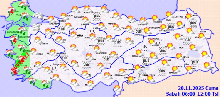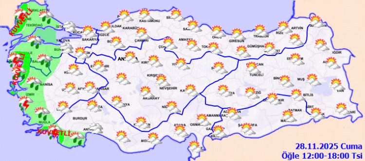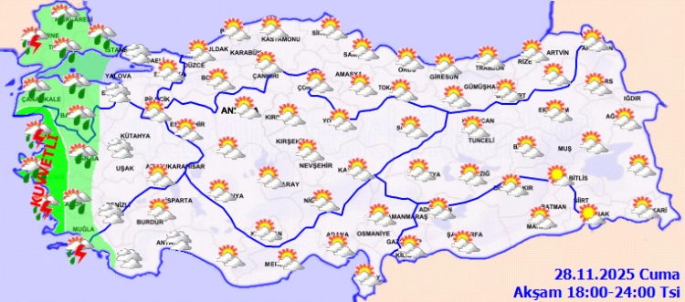 Meteoroloji Genel Müdürlüğü, 28 Kasım Cuma gününe ilişkin hava tahmin raporunu yayımladı.