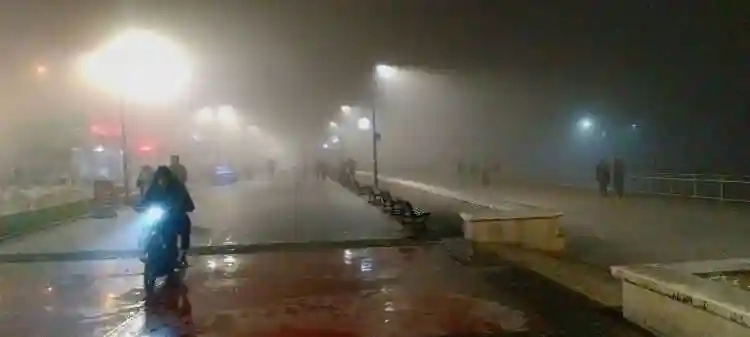 Sahil boyunu etkisi altına alan yoğun sis nedeniyle oluşan manzara kameralara yansıdı.