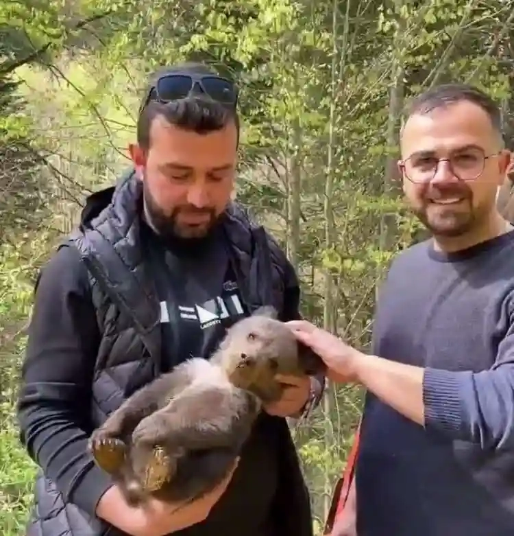 Mahalle sakinleri sevimli ayıyı ormana salmadan önce videosunu çekip sosyal medyada paylaştı.