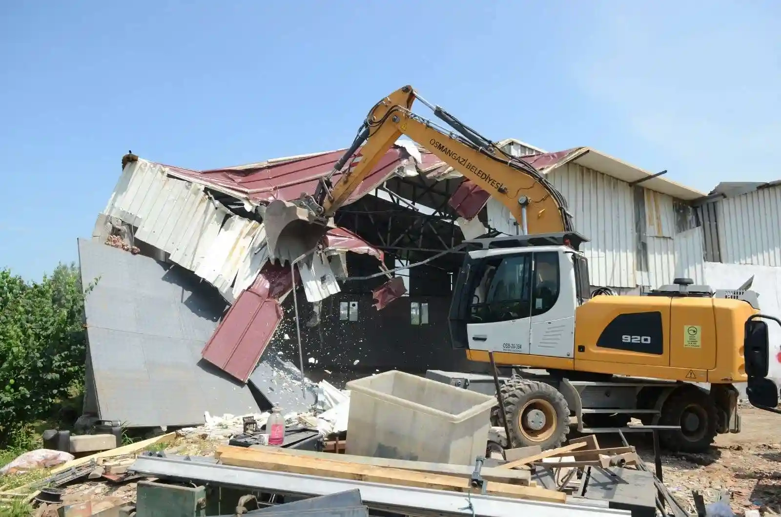 Mehmet Akif Mahallesi’nde meyve bahçeleri arasında kaçak olarak inşa edildiği belirlenen işyeri, belediye ekipleri tarafından yıkıldı.