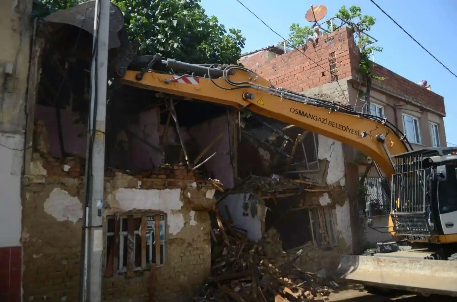 Osmangazi Belediyesi, ilçedeki metruk binaları yıkarak ortadan kaldırıyor. Küplüpınar Mahallesi’nde bulunan, alkol ve uyuşturucu kullananların mekanı haline gelen metruk bina, belediye ekipleri tarafından yıkıldı.