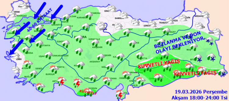 Meteoroloji Genel Müdürlüğü, 19 Mart Perşembe gününe ilişkin hava tahmin raporunu yayımladı.