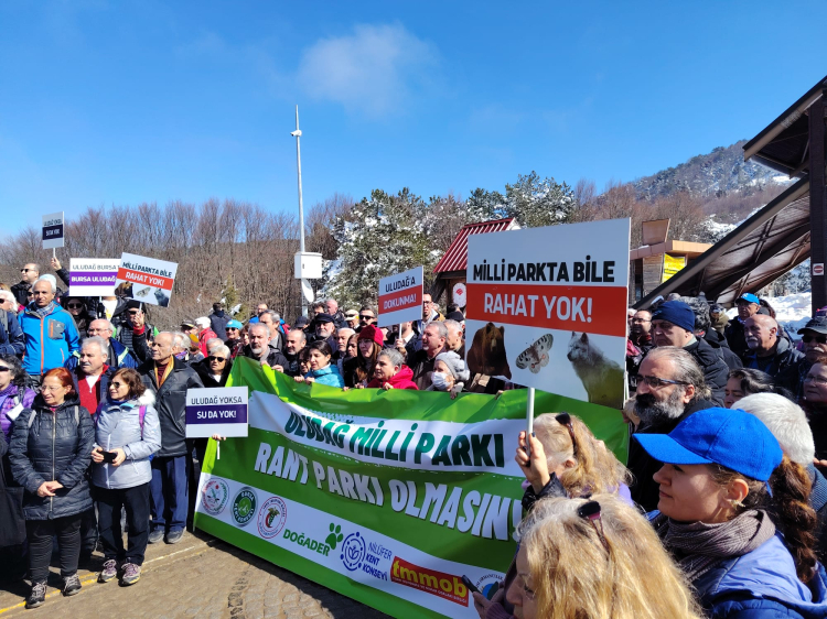 Sivil toplum kuruluşları, yasa değişikliğinin Uludağ’ın doğal yaşamını tehdit ettiğini ve Bursa’nın yaşam kaynağını yok olma riskiyle karşı karşıya bıraktığını ifade ederek, “Bursalıya sormadan, Uludağ Milli Parkı’nı şirketlere peşkeş çekemezsiniz. Uludağ Milli Parkı ile Bursa var olur. Uludağ Milli Parkı yoksa Bursa yok olur” mesajını verdi.