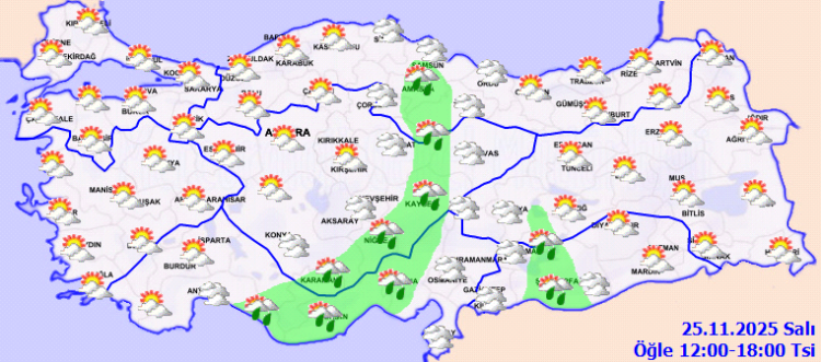 Meteoroloji Genel Müdürlüğü, 25 Kasım Salı günününe ilişkin hava tahmin raporunu yayımladı.