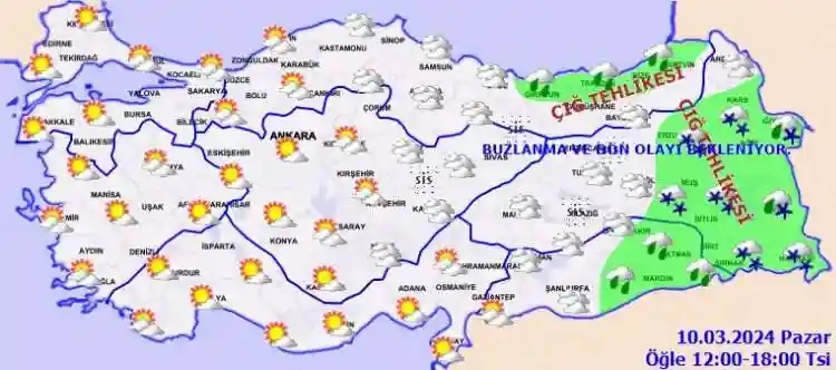 ÇIĞ TEHLİKESİ UYARISI: Doğu Karadeniz’in iç kesimleri ile Doğu Anadolu’nun kuzey ve doğusunun kar örtüsüne sahip eğimli yamaçlarında çığ tehlikesi bulunduğundan dikkatli ve tedbirli olunmalıdır.