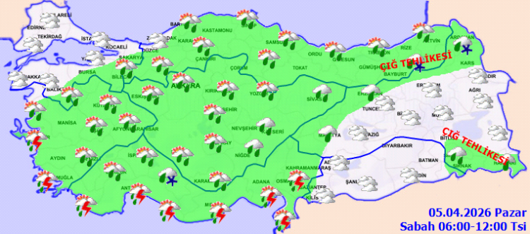 Yağışların; genellikle yağmur ve sağanak, Ege ve Akdeniz kıyıları ile Güneydoğu Anadolu’nun yer yer gök gürültülü sağanak, Doğu Anadolu’nun kuzeydoğusunun yükseklerinde karla karışık yağmur ve yer yer kar şeklinde olması beklenirken, Doğu Karadeniz'in iç kesimleri ile Doğu Anadolu'da yüksek kar örtüsüne sahip eğimli alanlarda çığ ve kar erimesi tehlikesi bulunuyor.