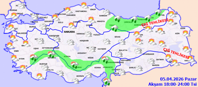 Meteoroloji Genel Müdürlüğü, 5 Nisan Pazar gününe ilişkin hava tahmin raporunu yayımladı.