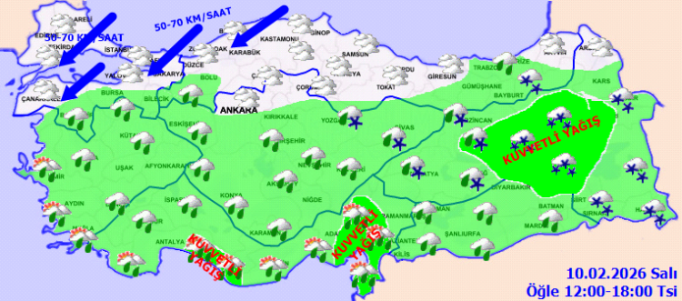 Meteoroloji Genel Müdürlüğü, 10 Şubat Salı gününe ilişkin hava tahmin raporunu yayımladı.