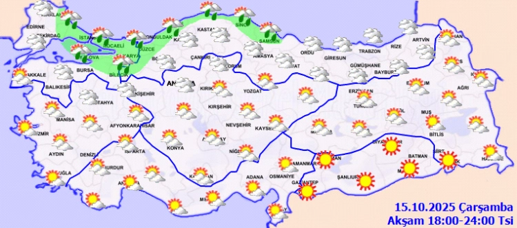 Meteoroloji Genel Müdürlüğü, 15 Ekim Çarşamba gününe ilişkin hava tahmin raporunu yayımladı.