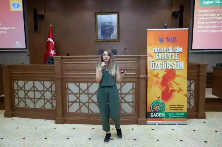 Bursa Büyükşehir Belediyesi İnsan Kaynakları ve Eğitim Dairesi Başkanlığı Eğitim Şube Müdürlüğü ile Gençlik ve Aile Destek Merkezi (GADEM) işbirliğiyle düzenlenen eğitim, Belediye Meclis Salonu’nda Sosyolog Hülya Özkan Timur’un sunumuyla gerçekleştirildi. ‘Bağımlılık nedir?’ sorusunun yanıt bulduğu eğitimde bağımlılık türleri, tanı ve tedavi yöntemleri ile beraberinde getirdiği sorunlar hakkında bilgiler verildi. Eğitimde, bağımlılığın oluşmasındaki çevresel ve sosyal etmenlerin yanı sıra bağımlılığın kişi üzerindeki ruhsal ve fiziksel etkileriyle mücadele konuları da ele alındı.